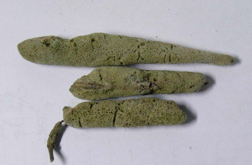 【表面特征】:长条蜂窝棒状,有木芯