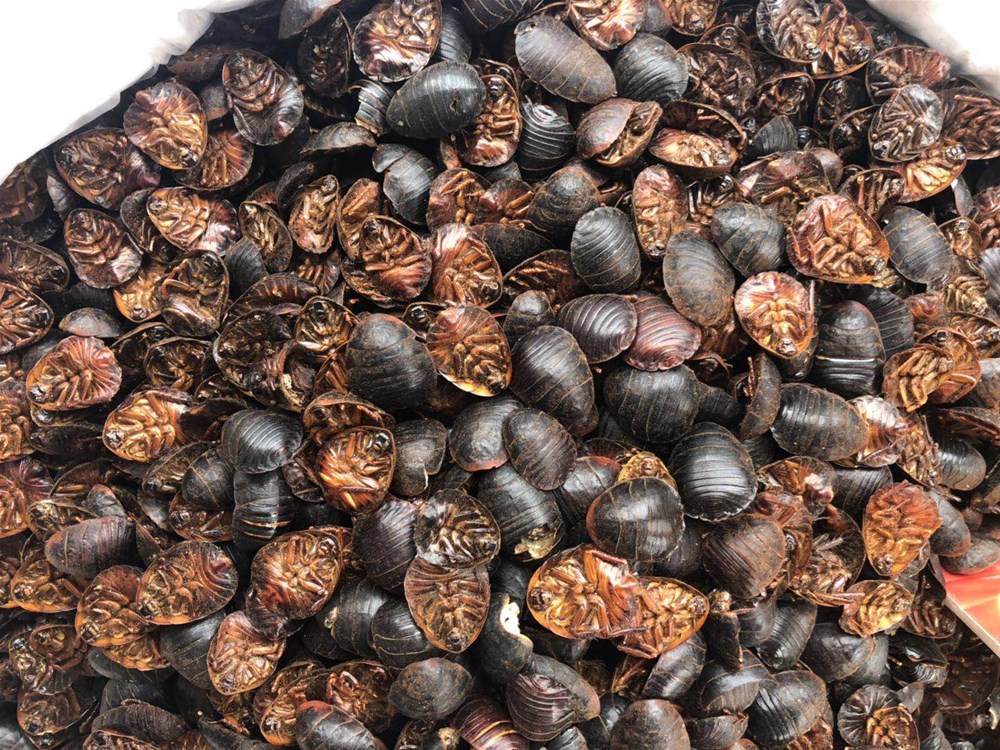 【性 状】:地鳖:呈扁平卵形,长1.3~3cm,宽1.2~2.4cm。前端较窄,后端较宽,背部紫褐色,具光泽,无翅。前胸背板较发达,盖住头部, 腹背板9节,呈覆瓦状排列。腹面红棕色,头部较小,有丝状触角1对,常脱落,胸部有足3对,具细毛和刺。腹部有横环节。质松脆,易碎。气腥臭。味微咸。冀
