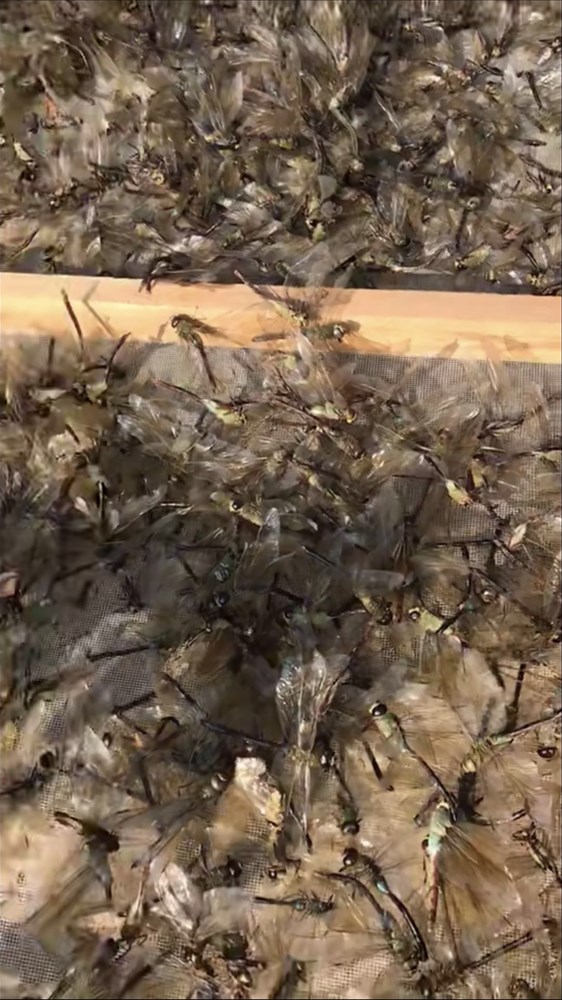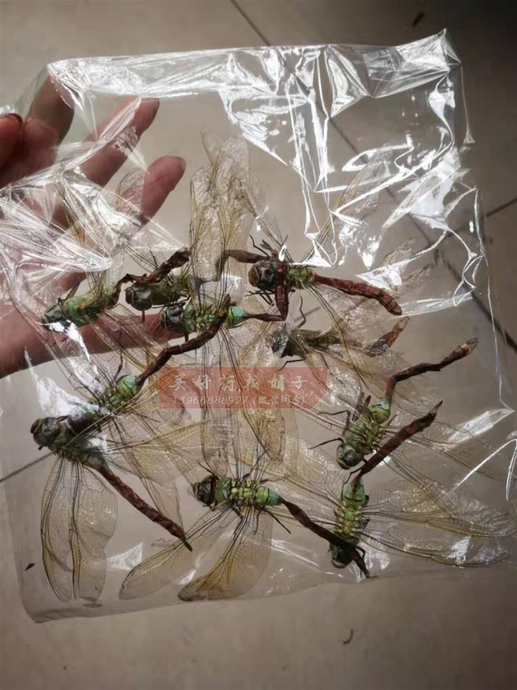 【药材性状】体色带绿,头部有大型复眼1对,胸部黄绿色,胸侧第1及第3上方1/3具条纹。翅2对,膜质,透明