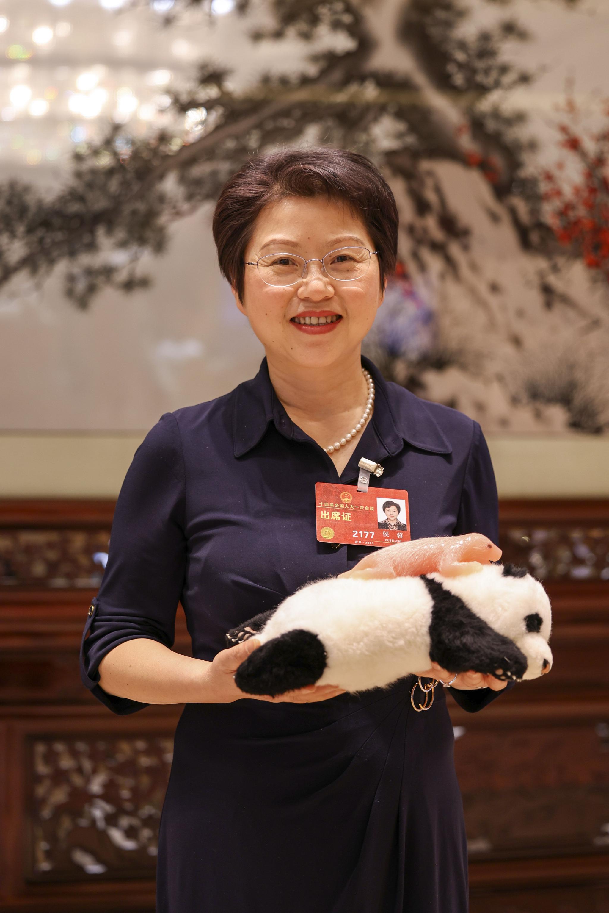 新华社照片,北京,2023年3月9日侯蓉代表:推进对具有生态功能关键性物种的保护和种群复壮工作全国人大代表、成都大熊猫繁育研究基地副主任侯蓉从事大熊猫等野生动物保护研究近30年,她提出要推进对具有生态功能关键性物种的保护和种群复壮工作。