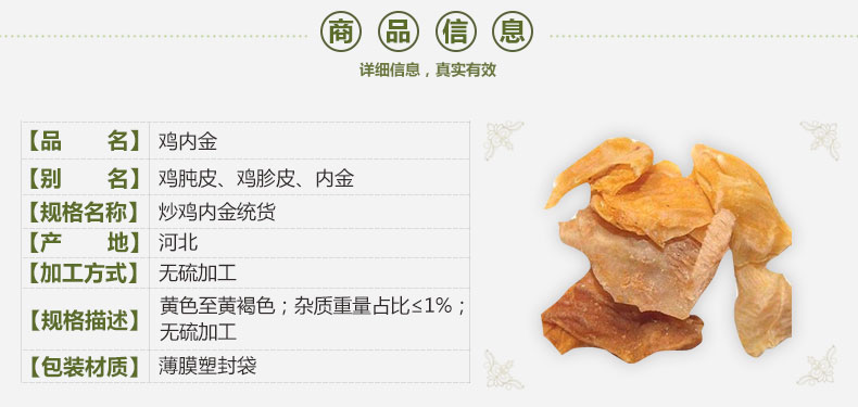 【满298元包邮】炒鸡内金统货 1公斤1袋
