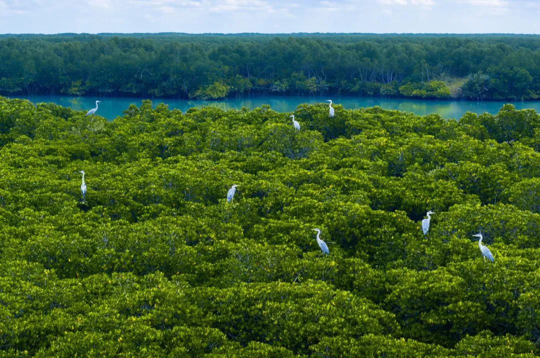 那么为什么要保护红树林呢?怎么保护红树林呢? 如果说湿地是地球的“肾”,森林是地球的“肺”,红树林就是湿地和森林之和——这也是红树林区别于其他生态系统最大的不同。正是看到了红树林的独特宝贵价值,政府、保护区、企业纷纷行动,希望通过多维联动的方式,守护红树林、守护蔚蓝天。 在保护区层面,湛江针对不同的红树林片区采取了不同保护方式。金牛岛红树林保护区采取“红树林种植与养殖耦合”的方式,将红树林的生态效益和当地居民的经济受益挂钩,带动当地居民自觉保护红树林;高桥红树林保护区则是除了铲除外来植物侵扰之外,尽可能地不干预植物的自然生长,尊重大自然规律,让红树林生长得尽量野蛮。 红树林种植与养殖耦合