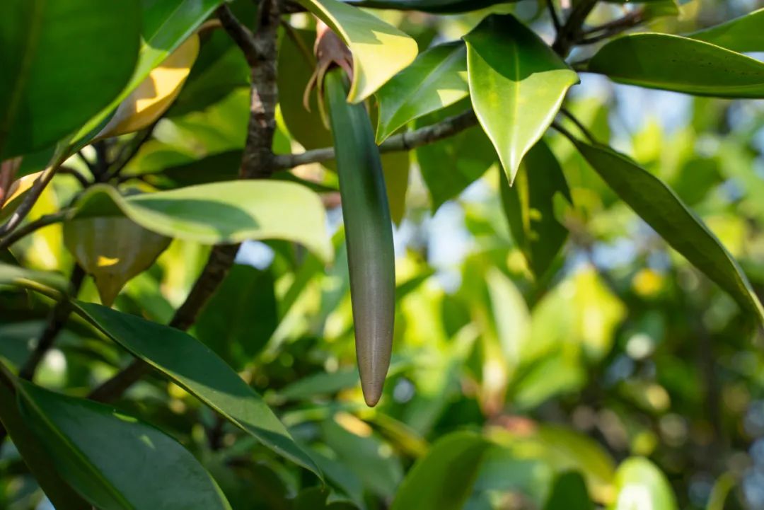 除了“心红表不红”,红树林另一个独特之处在于,它扎根于海洋与陆地过度地带的潮间带,一天中有一半时间会被海水覆盖,高温、高盐、缺氧的生存环境,对其他植物十分“窒息”,但聪明的红树植物进化出了自己独有的“排盐系统”,通过半透膜体系过滤盐分,再利用叶片盐线排出多余的盐——就像人类出汗一样,这样一来,即使每天被海水浸泡,也可以自如“呼吸”。 正是因为这一生长特性,让红树林摘得了“海岸卫士”的称号——它可以有效保护堤坝,减轻风暴浪潮灾害,对沿岸居民的生活生产起到重要作用;同时,红树林吸收二氧化碳的能力达到了热带森林的近6倍,高效的固碳储碳能力被视为绿色环保生态里不可或缺的一环。所以随着国家“双碳目标”的发布,红树林的生态价值也得到越来越多的关注和重视。 红树植物(木榄)的“胎生”胚轴