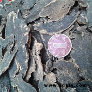 [性 状]:本品根类圆柱形,中部略粗,或上粗下细,有的微弯似羊角状,长6-20cm,直径1-3cm。表面灰黄色或棕褐色,有明显纵沟或横向皮孔,偶有短的细根或细根痕。质坚实,难折断,断面略平坦,乌黑色,微有光泽。有焦糖气,味甘微苦。以水浸泡,水呈墨黑色。