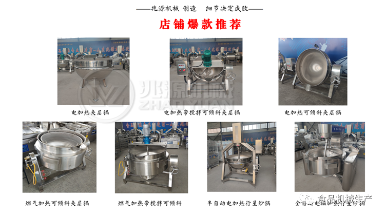 适应于各种高粘度酱料的搅拌加热蒸煮炒制:焙烤馅料炒制业(果酱、莲蓉、豆沙、水果蓉、蜜饯、枣泥)、肉制品熟食加工业(卤味、肉酱、牛肉酱、海鲜酱)、调味品业(火锅底料、方便面酱料、香其酱)、糖果业(果酱、糖料)、蔬菜玉米加工业(香菇酱、辣椒酱)、酒店用品及快餐(食堂熬汤、烧菜、炖肉、熬粥)等食品加工业。