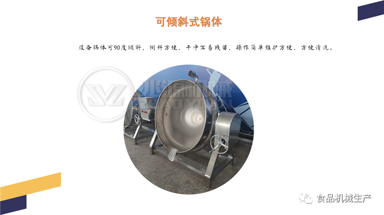 4.蒸汽加热:高温度100摄氏度左右需要与蒸汽产生装置一起使用宜福机械常年生产各种型号夹层锅,可倾式夹层锅,带搅拌可倾式夹层锅,半自动行星搅拌夹层锅,全自动行星搅拌夹层锅等系列。